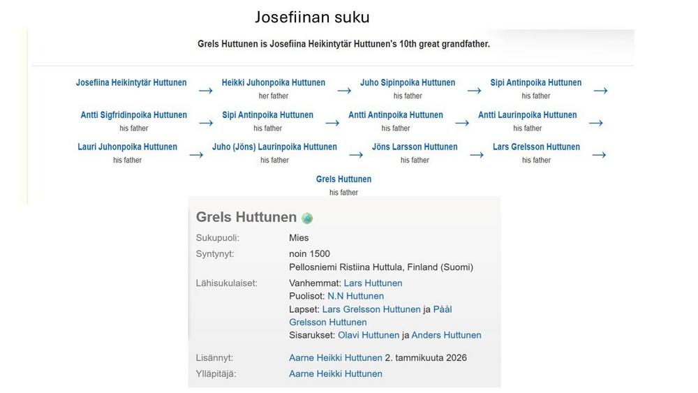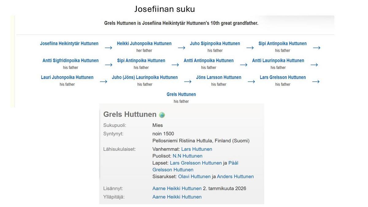 - Geni https://www.geni.com/people/Josefiina-Huttunen/6000000111107781864 . Aarne Heikki Huttunen