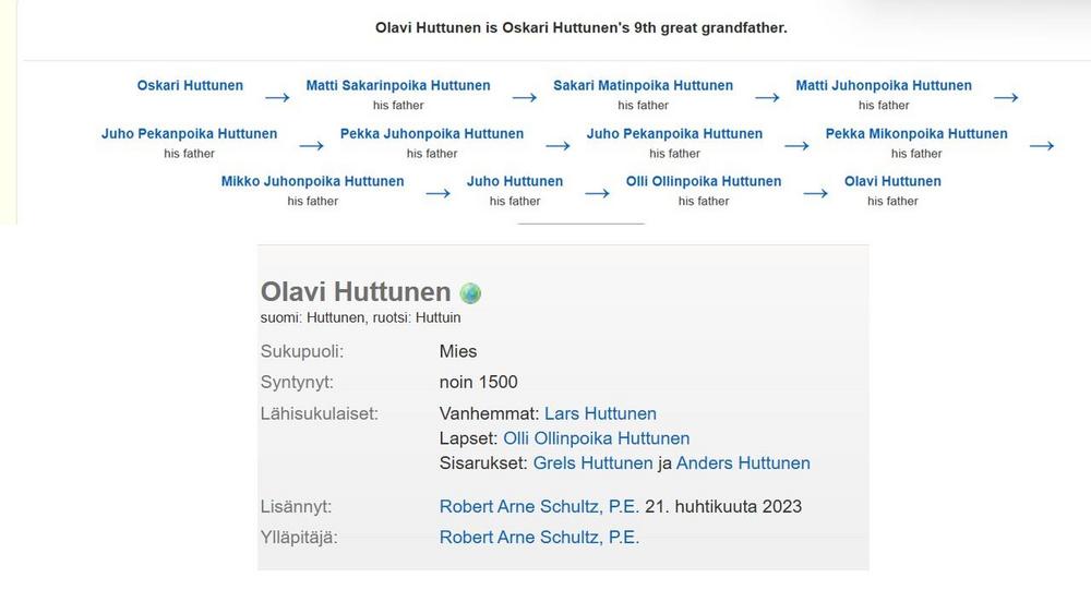Maantarkastusasiakirja osoittaa Pellosniemen Ristiinan Huttulan anekkiin liittyvät maat ja henkilöt. Lars Huttusen pojat Olof, Grels ja Anders Huttunen mainitaan tässä maantarkastusasiakirjassa ja heitä voidaan pitää Ristiinan Huttusten kantahenkilöinä.